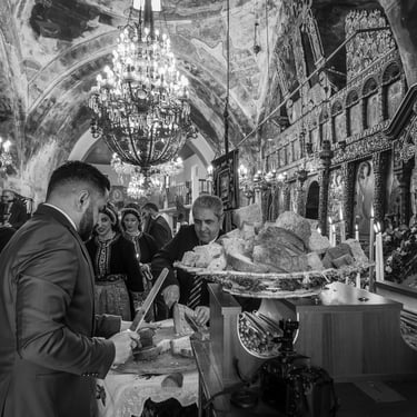 Nei giorni che precedono la Pasqua, il villaggio si trasforma. Le donne, vestite con i loro abiti tradizionali, impastano i koulourakia, biscotti dolci intrecciati a mano, e il tsoureki, il pane soffice arricchito con semi di sesamo e profumato di mahlep. Negli angoli delle strade, gli uomini lavorano il legno per riparare le icone della chiesa e i candelabri, mentre i bambini tingono le uova di rosso, simbolo del sangue di Cristo.