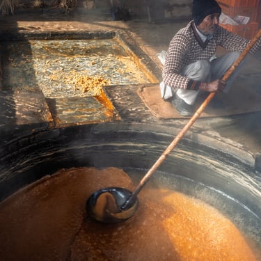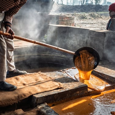 Nel cuore rurale del Punjab, tra campi coltivati a patate, si nasconde un’attività antica quanto il mondo: la produzione artigianale dello zucchero di canna. Non ho documentato la raccolta, ma ciò che accade subito dopo, in quelle piccole fornaci a cielo aperto dove la canna tagliata viene trasformata in dolcezza attraverso un processo lungo, logorante, fisicamente estenuante.
