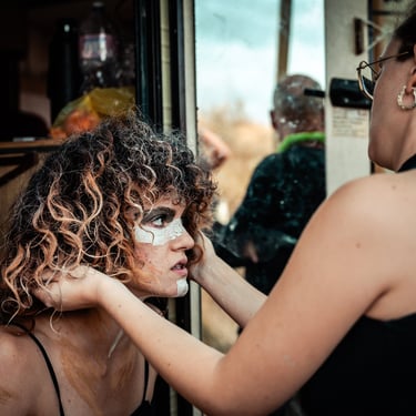 Ma è stato nel backstage che ho sentito davvero l’anima del progetto. Lì c’erano gli attori, a truccarsi tra uno scherzo e un abbraccio, i parrucchieri che sistemavano ciocche di capelli con calma, tra battute e canti. E intanto, tra una risata e un momento di concentrazione, si percepiva una strana magia: quella di chi fa teatro con passione, senza sovrastrutture, con le mani e con il cuore.