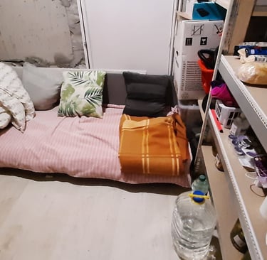Nei primi giorni, la famiglia si rifugiò nel seminterrato del palazzo. «Portiamo giù materassi, coperte, e ciò che potevamo raccogliere in fretta. Sembrava di tornare indietro nel tempo, ai giorni dell'occupazione di Donetsk. Il rumore delle esplosioni era così forte che sembrava che il palazzo stesso tremasse. Ad ogni boato sembrava che il nostro rifugio crollasse».